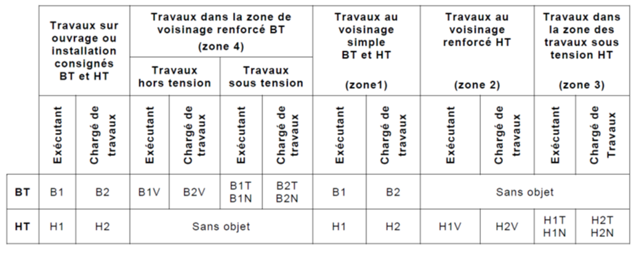 Ce sont des travaux qui concernent pour un ouvrage, les parties actives, leurs isolants, la continuité des masses et autres parties conductrices des matériels (les circuits magnétiques,...) ainsi que le conducteur de protection des installations et dont l'exécution requiert une formation au moins élémentaire en électricité.